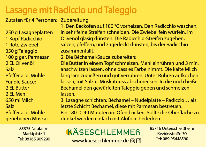 Lasagne mit Radiccio und Taleggio